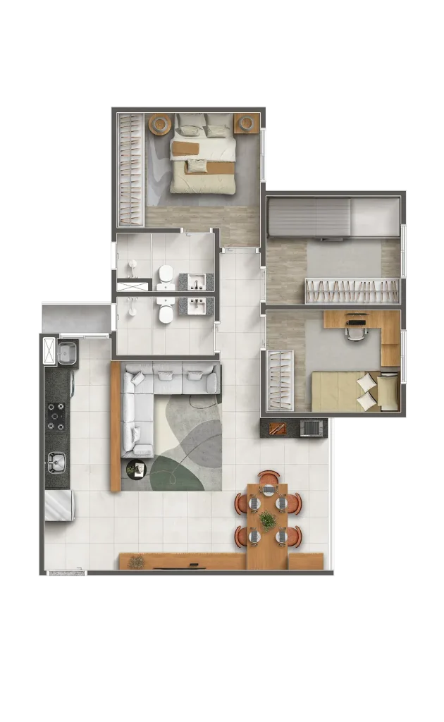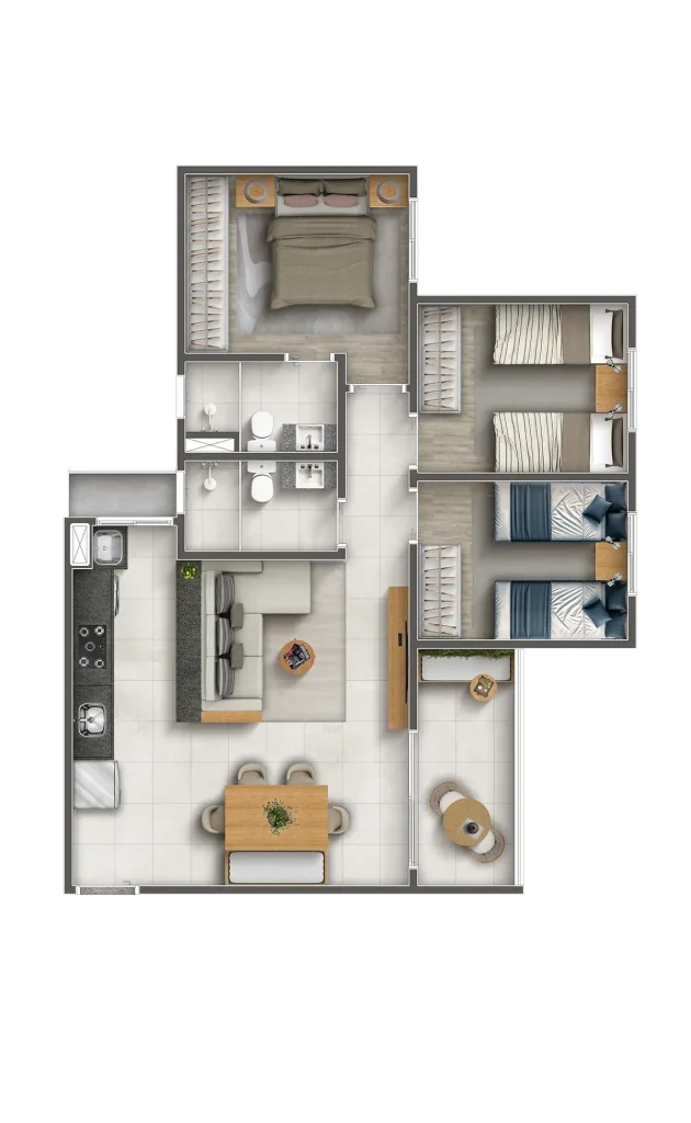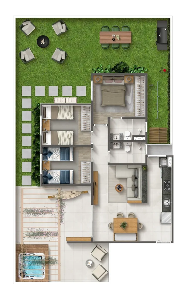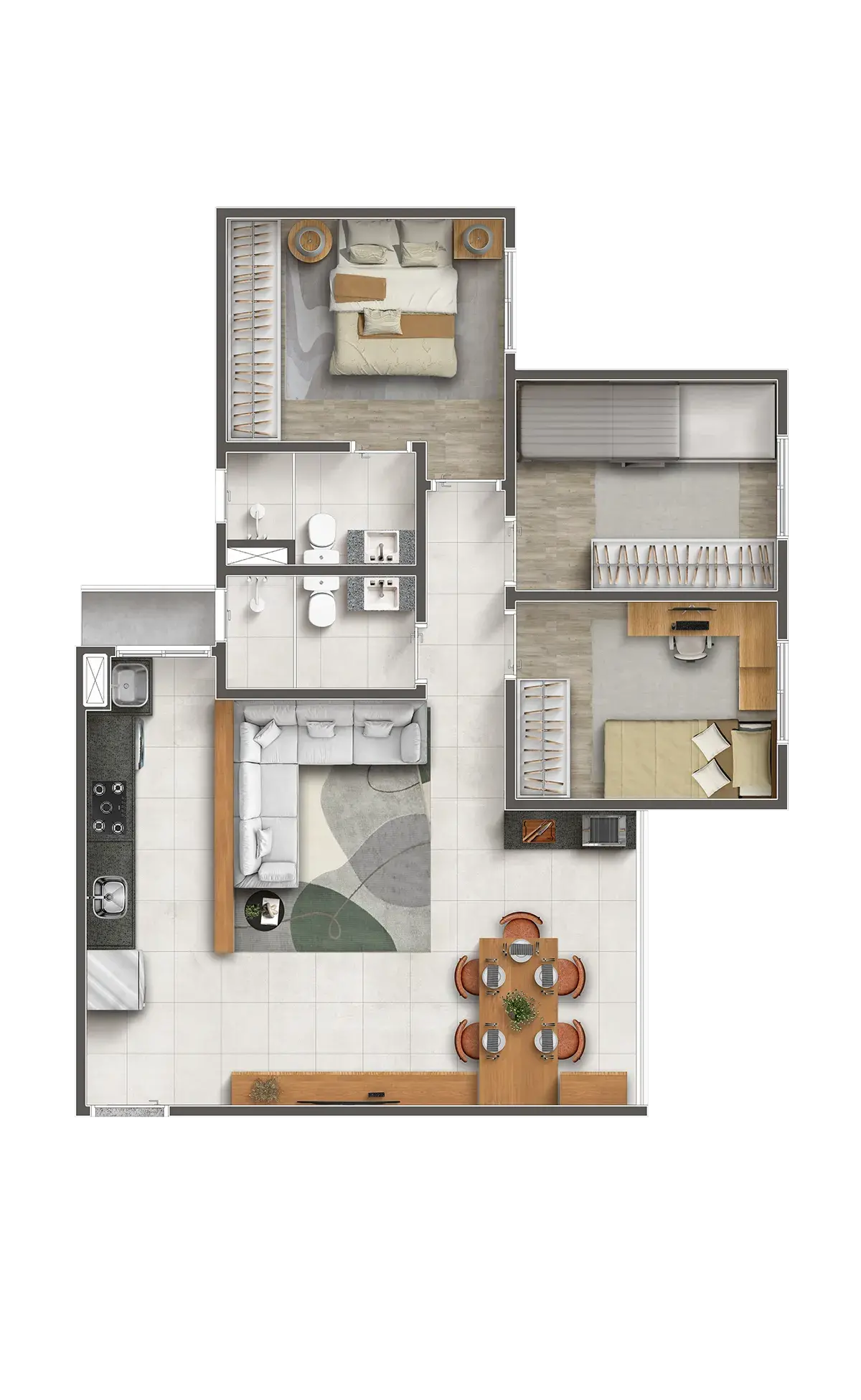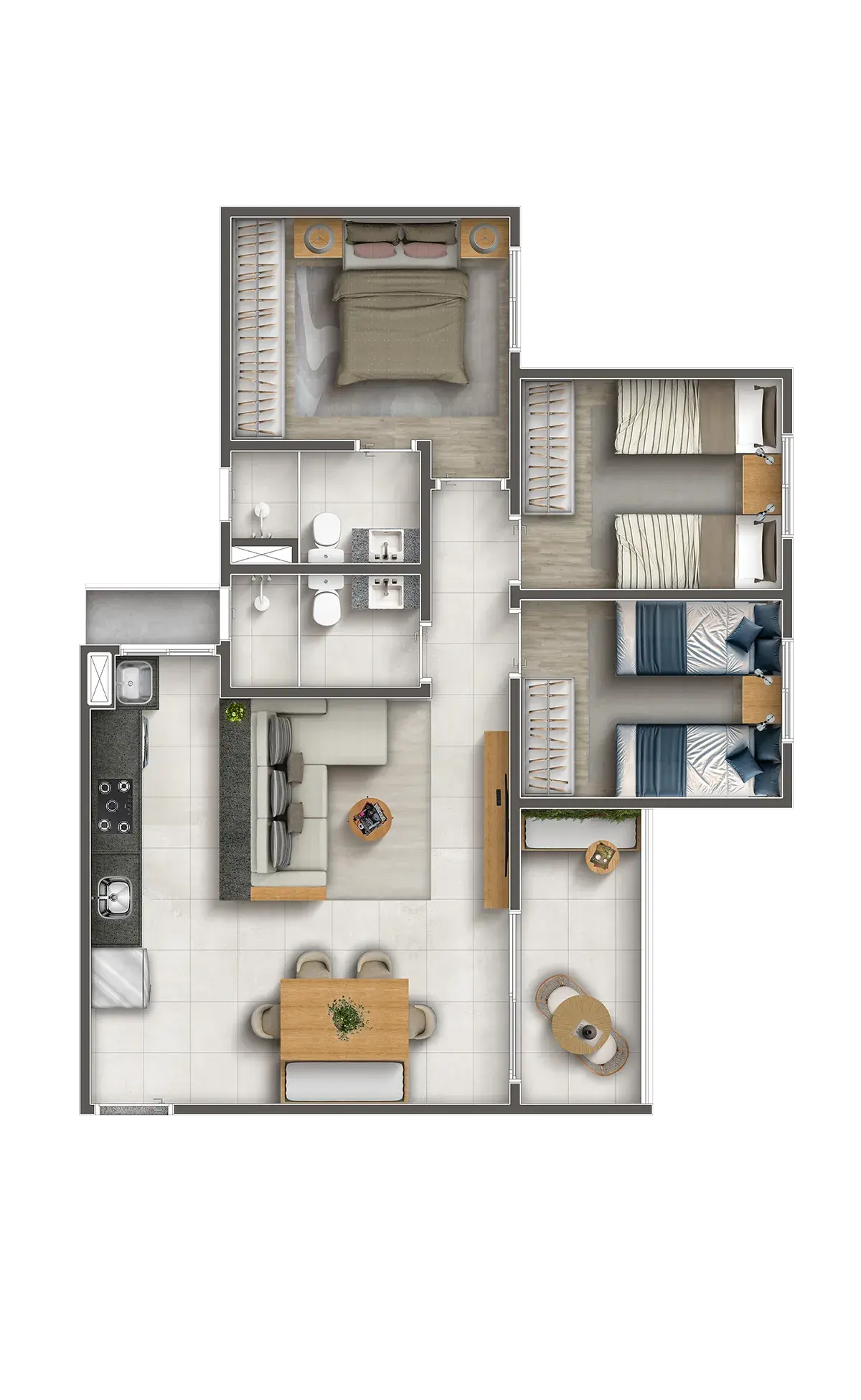 Todas as imagens são meramente ilustrativas e as decorações são apenas sugestões. Os acabamentos serão entregues conforme memorial descritivo. Perspectivas ilustradas sujeitas a alterações. O paisagismo apresentado nas perspectivas é uma sugestão e apresenta plantas em porte adulto, a ser atingido após anos da entrega do empreendimento. Fotos e imagens virtuais dos apartamentos decorados são sugestões de decorações, apresentando itens decorativos ilustrativos. Os acabamentos serão entregues conforme memorial descritivo. A perspectiva artística da fachada é ilustrativa e está sujeita a alterações de cor, tonalidade e outros detalhes de acordo com o projeto arquitetônico.